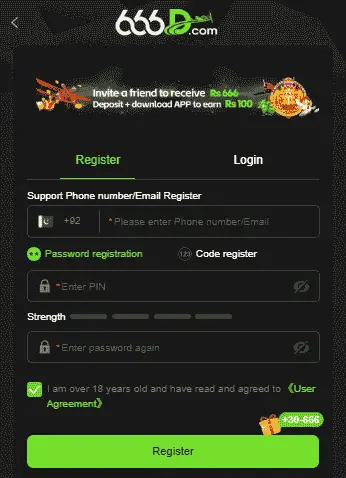 To deposit: Open the 666d app, go to Deposit, choose JazzCash or Easypaisa, and enter the amount and your registered mobile wallet number. Confirm.