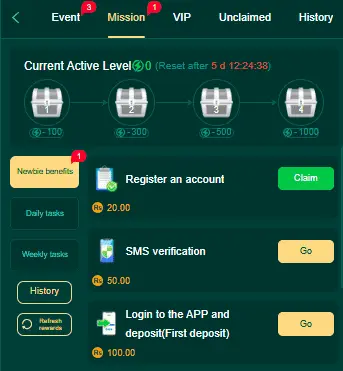 Login to the app & make first deposit Reward: 100.00 PKR.