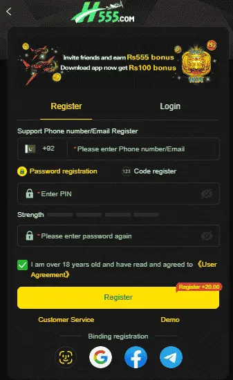 The H555 Casino APK lets users register, play games, and use the H 555 game login to access rewards, deposits, and withdrawals.