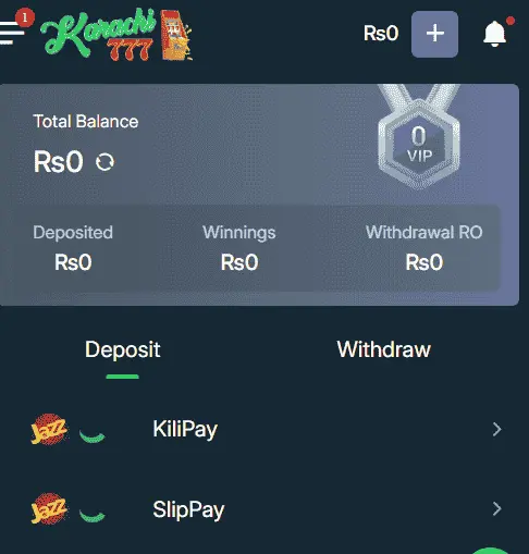 The app supports Easypaisa and JazzCash for deposits. Players also ask how to withdraw PKR from online casino to JazzCash, which is available here.